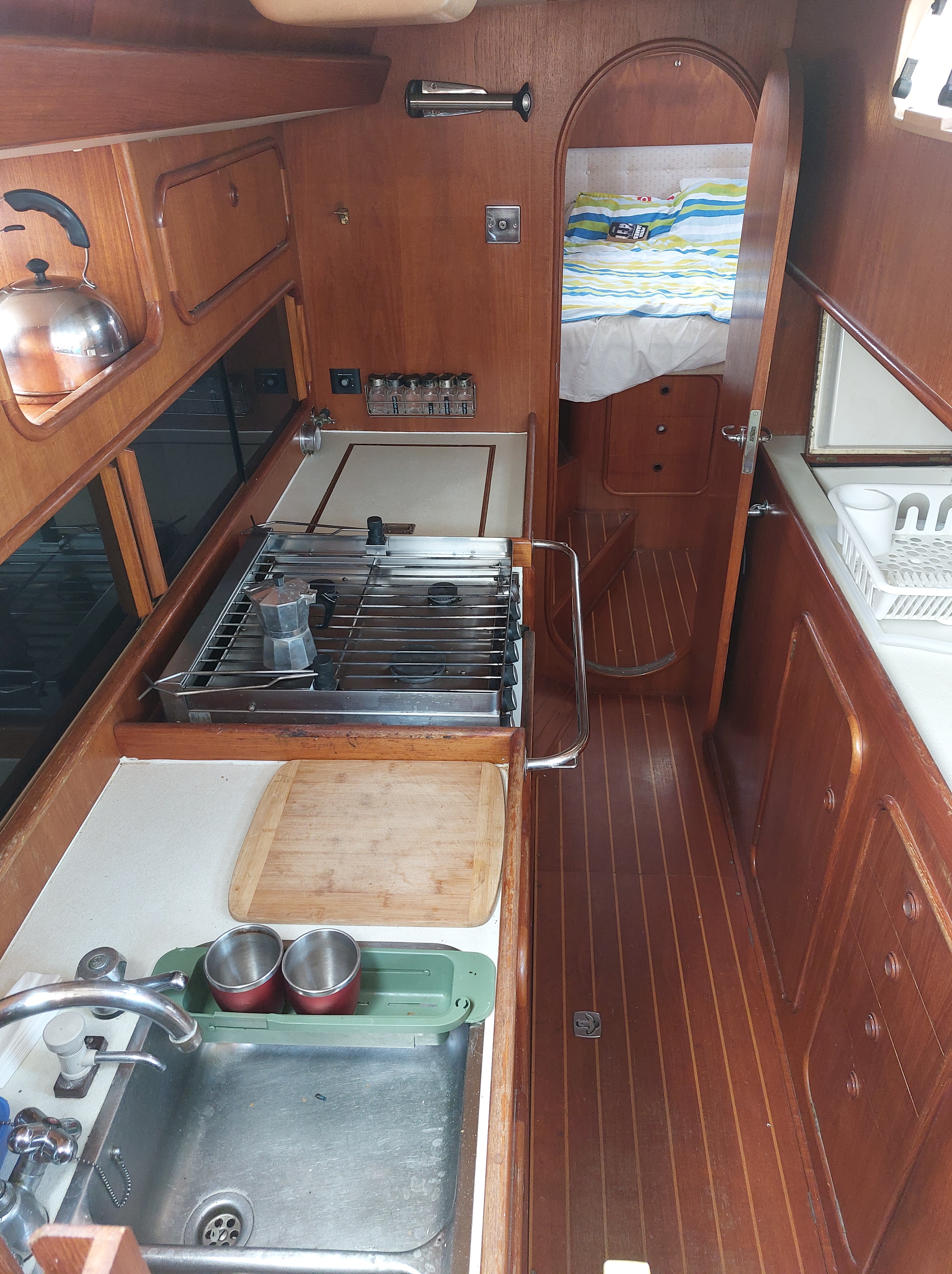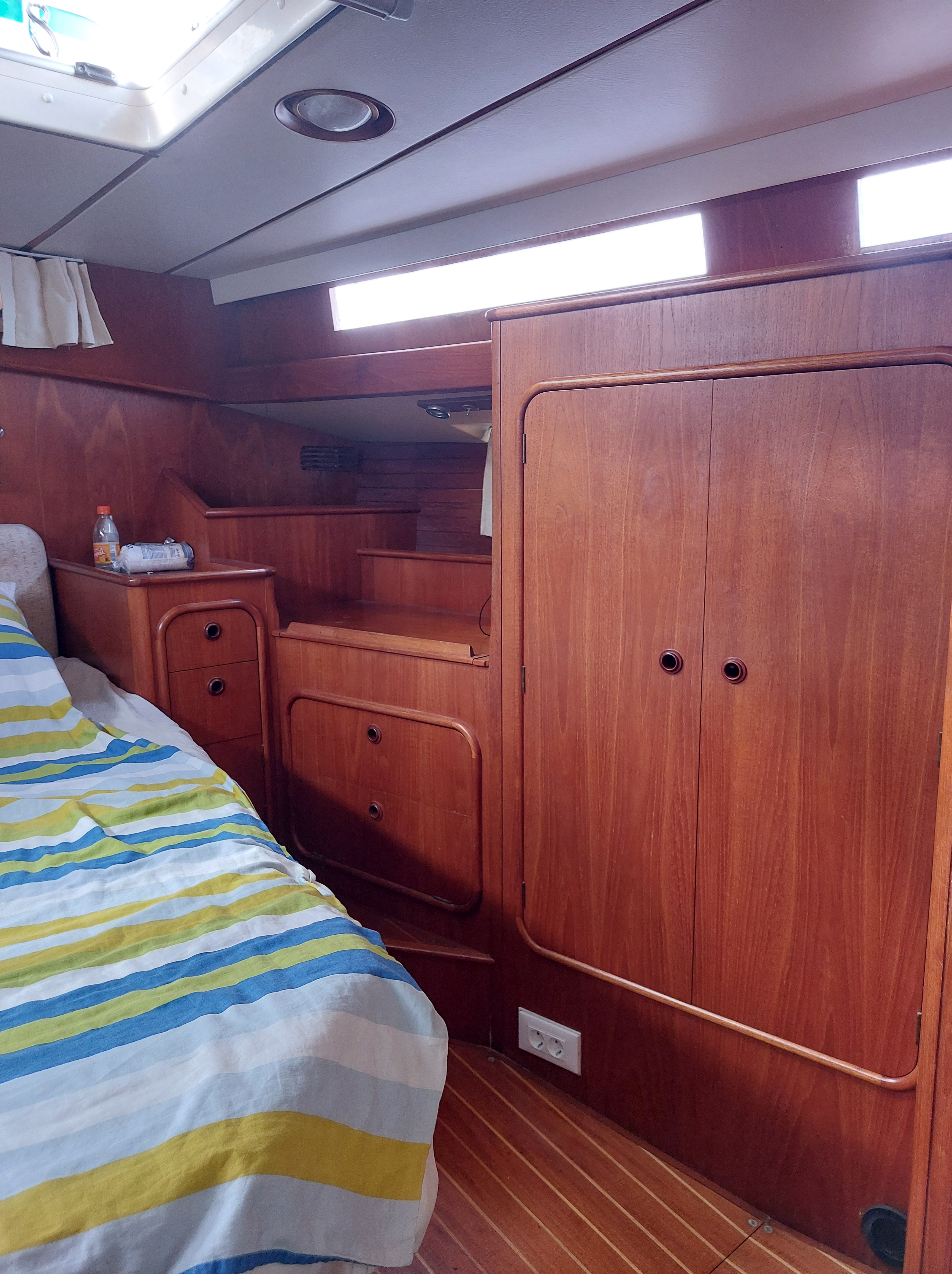 Serene is an Oyster HP 46, built in 1989 and launched in 1990. Designed by the esteemed naval architects Holman & Pye, this classic deck saloon cruising sailboat is celebrated for its exceptionally spacious and light-filled interior, featuring beautiful, high-quality woodwork. The interior combines traditional craftsmanship with modern living comforts, offering highly livable and comfortable accommodations ideal for extended voyages.